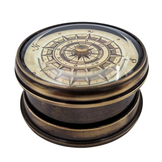 Busola sprawdzi się jako piękny prezent dla sternika, kapitana lub żeglarza. Będzie mogła pełnić rolę niecodziennego przycisku do papieru. Jest to wyjątkowy element dekoracyjny, który świetnie sprawdzi się w pomieszczeniach w stylu marynistycznym, kolonialnym lub vintage.