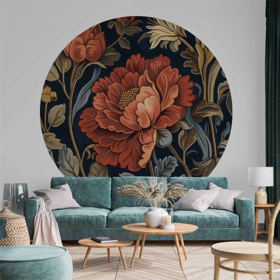 Fototapeta okrągła - Gobelinowe wielkie kwiaty w stylu retro