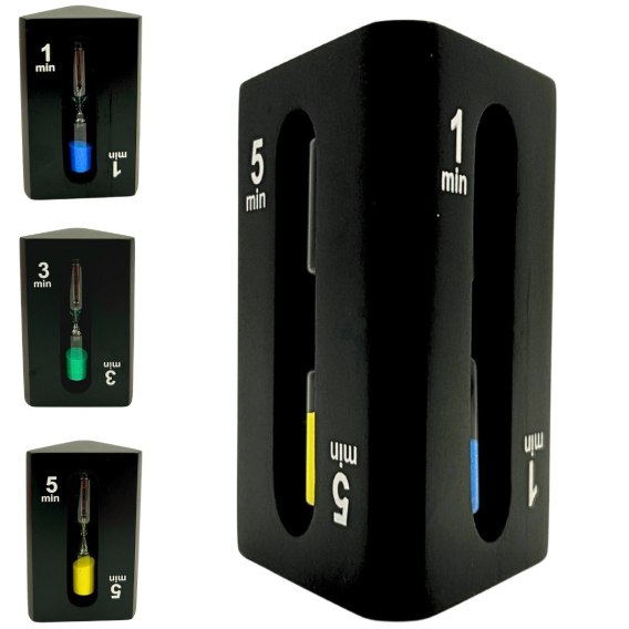 Klepsydra 1-3-5 minut trójstronna czarna - nowoczesny timer i dekoracja - STW6