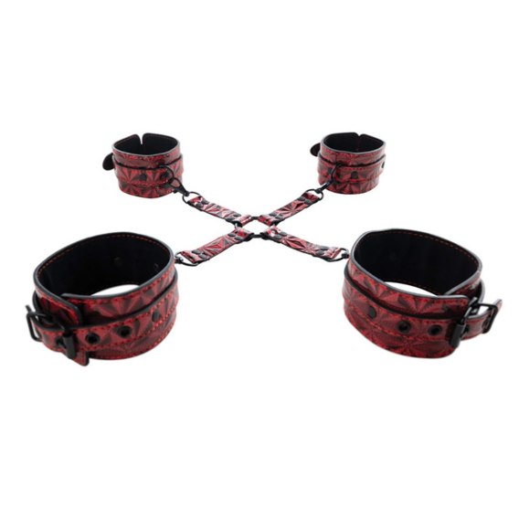 Luksusowy zestaw hogtie z mankietami na nadgarstki i kostki bez niklu