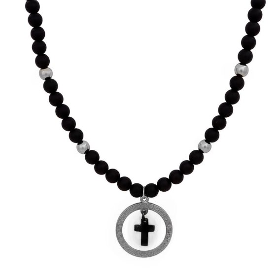 Naszyjnik onyks i krzyż w okręgu (C21/KOR/11RU)