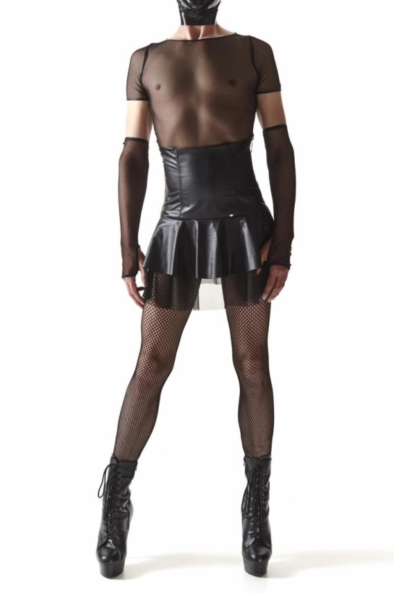 Koszulka wykonana z elastycznej, czarnej siateczki. Przy szyi i rękawkach obszyta elastyczną taśmą z czarnego wetlooka. Doskonale dopasowuje się do ciała podkreślając jego walory.